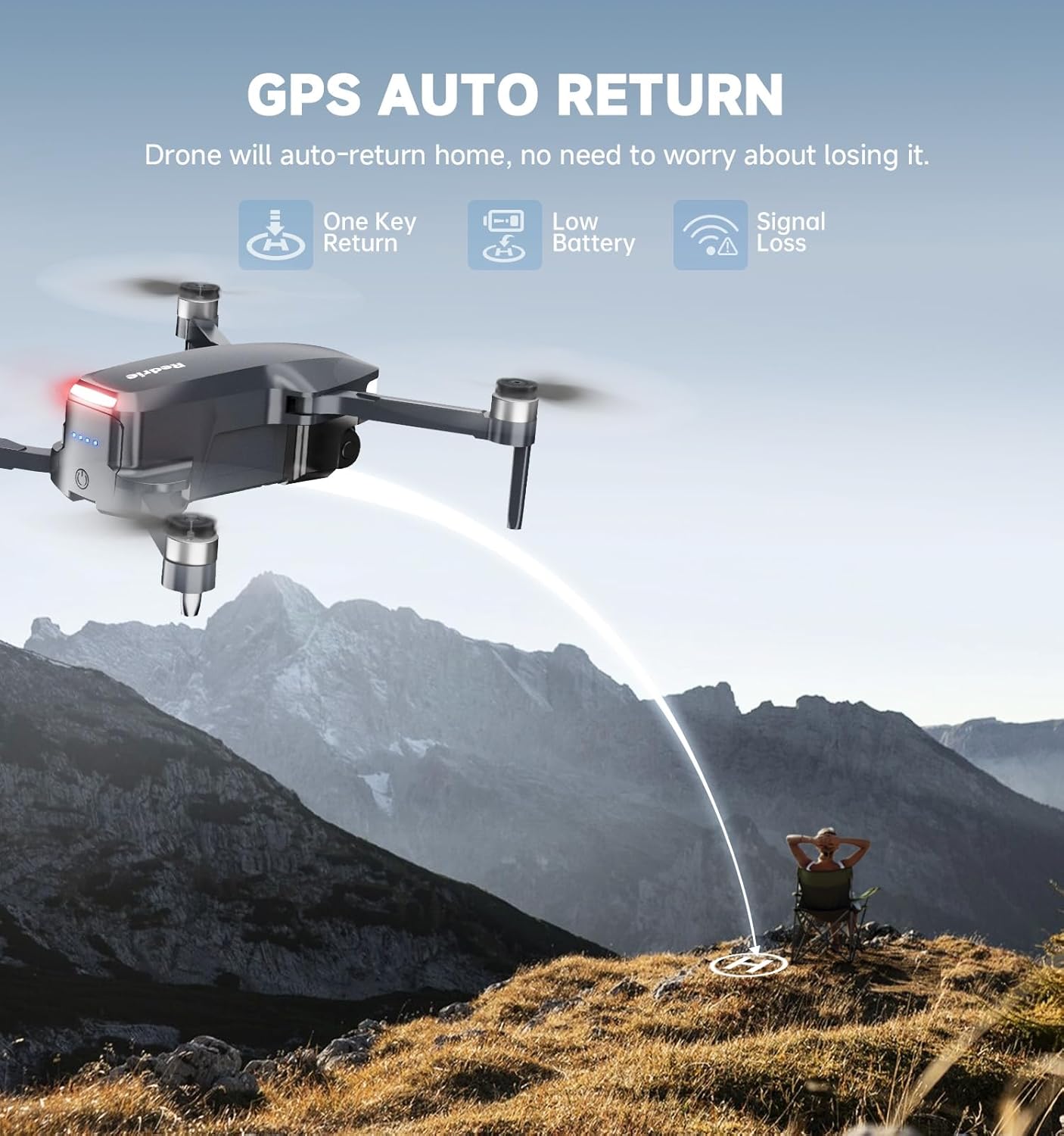 - [ Versatile Smart Flight Modes ] Equipped with a high-precision GPS module, it automatically returns home when losing signal, exceeding flight range, or running low on battery. Supports GPS Follow, Route Planning, and Fly Around—perfect for beginners and hobbyists, adding fun and versatility to your aerial shots.